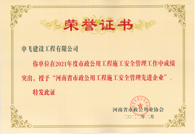 - [04-12]申飛建工再獲“省先進施工企業(yè)”、 “市政金杯獎”等多項榮譽